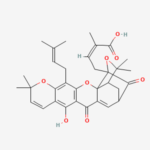 A chemical probe is a well-characterized small molecule used to investigate biological systems by selectively modulating a specific protein target. nih.govfebs.org this compound and its related caged xanthones serve as valuable chemical probes due to their potent cytotoxic activities, which allow for the exploration of cellular pathways involved in cancer. scienceopen.comnih.gov The utility of such probes is defined by their ability to engage a target within a cell and produce a measurable effect, thereby helping to identify and validate novel therapeutic targets. nih.gov