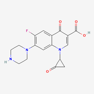 Oxo-ciprofloxacin (oxo-CIP) is a primary human metabolite of the fluoroquinolone antibiotic ciprofloxacin (B1669076). merck.com It is one of four major metabolites identified in human urine and serum, alongside desethylene ciprofloxacin, sulfociprofloxacin (B193944), and formylciprofloxacin. merck.comresearchgate.net The formation of these metabolites, including this compound, accounts for approximately 15% of an oral dose of ciprofloxacin. drugbank.com