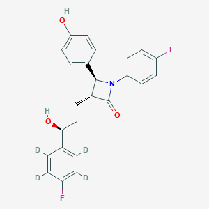 The synthesis of this compound, specifically (3R,4S)-1-(4-fluorophenyl-d4)-3-[(S)-3-(4-fluorophenyl)-3-hydroxypropyl]-4-(4-hydroxyphenyl)azetidin-2-one, can be achieved through a multi-step process. A known method for preparing deuterated Ezetimibe involves a seven-step synthesis starting from [2H5]fluorobenzene, with an overall yield of 29.3%[1][2][3]. While the detailed experimental specifics for each step are not publicly available, a plausible synthetic route can be constructed based on established Ezetimibe synthesis patents and literature.