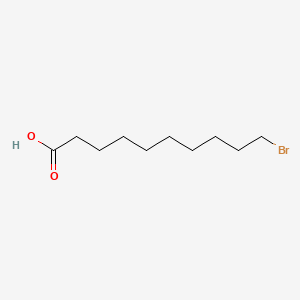 The molecule consists of a saturated ten-carbon chain, which imparts significant lipophilicity. The terminal carboxylic acid group provides a site for hydrogen bonding and deprotonation, influencing its solubility in aqueous and polar media. The bromine atom at the opposing terminus introduces a reactive handle for nucleophilic substitution reactions.