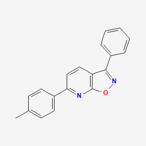 Isoxazolo[5,4-b]pyridine is characterized by a fused ring system that includes both isoxazole and pyridine moieties. The compound features a 4-methylphenyl group and a phenyl group at the 6 and 3 positions, respectively. The synthesis of this compound typically involves multi-step organic reactions, often starting from simpler isoxazole derivatives.