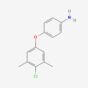 The structure of 4-(4-Chloro-3,5-dimethylphenoxy)aniline incorporates key functional groups that define its chemical character and reactivity. It is fundamentally a derivative of aniline (aminobenzene) and belongs to the class of diaryl ethers.