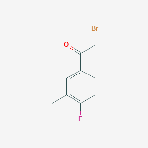 2-Bromo-1-(4-fluoro-3-methylphenyl)ethanone is a halogenated aromatic ketone with the molecular formula C₉H₈BrFO and a molecular weight of 231.06 g/mol . Its IUPAC name derives from the substitution pattern on the phenyl ring: a bromine atom at the alpha position of the ketone group, a fluorine atom at the para position (C4), and a methyl group at the meta position (C3) (Figure 1).