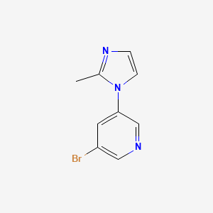 The mechanism of action of 3-bromo-5-(2-methyl-1H-imidazol-1-yl)pyridine involves its interaction with specific molecular targets and pathways. For example, the imidazole moiety can bind to the heme iron atom of cytochrome P450 enzymes, inhibiting their activity . This interaction can lead to various biological effects, depending on the specific enzyme and pathway involved.