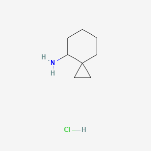The synthesis of spiro[2.5]oct-4-ylamine hydrochloride poses several challenges, including the need for efficient and selective methods to introduce the amine group without compromising the spiro ring structure. Current methods for related compounds highlight the importance of careful reagent selection and reaction conditions to achieve high yields and purity.