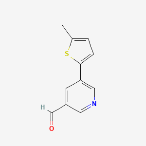 Synthetic Routes and Reaction Conditions: The synthesis of 5-(5-Methylthiophen-2-yl)pyridine-3-carbaldehyde typically involves the formation of the thiophene and pyridine rings followed by their subsequent functionalization. One common method involves the condensation of 5-methylthiophene-2-carbaldehyde with a suitable pyridine derivative under controlled conditions. The reaction often requires the use of catalysts and specific solvents to achieve high yields and purity .