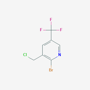 The mechanism of action of 2-Bromo-3-chloromethyl-5-(trifluoromethyl)pyridine involves its interaction with specific molecular targets. The presence of halogen atoms and the trifluoromethyl group can enhance its binding affinity to enzymes and receptors. The compound may act as an inhibitor or modulator of enzymatic activity, affecting various biochemical pathways.