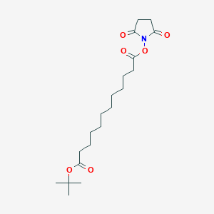 The mechanism of action of 1-tert-Butyl 12-(2,5-dioxopyrrolidin-1-yl)dodecanedioate involves its interaction with specific molecular targets and pathways. The dioxopyrrolidinyl group can form covalent bonds with nucleophilic sites on proteins and enzymes, potentially altering their activity and function. This interaction can lead to changes in cellular processes and biochemical pathways .