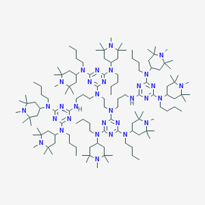 This compound, also known by its chemical name N,N',N'',N'''-tetrakis(4,6-bis(butyl-(N-methyl-2,2,6,6-tetramethylpiperidin-4-yl)amino)triazin-2-yl)-4,7-diazadecane-1,10-diamine, is a complex oligomeric hindered amine light stabilizer. Its structure is characterized by a central diazadecane diamine backbone linked to four triazine rings, which are further substituted with bulky N-butyl-N-(N-methyl-2,2,6,6-tetramethylpiperidin-4-yl)amino groups. This intricate design is pivotal to its function as a light stabilizer.