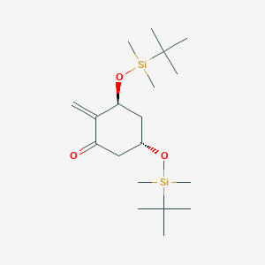The mechanism of action of (3S,5S)-3,5-Bis(tert-butyldimethylsilyloxy)-2-methylene-cyclohexanone depends on the specific reactions it undergoes. Generally, the silyloxy groups can stabilize intermediates during reactions, facilitating various transformations. The methylene group can participate in addition reactions, while the ketone group can undergo nucleophilic attack.