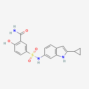 C1CC1C2=CC3=C(N2)C=C(C=C3)NS(=O)(=O)C4=CC(=C(C=C4)O)C(=O)N | |