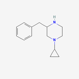 The synthesis of 3-Benzyl-1-cyclopropylpiperazine can be achieved through several methods. One common approach involves the cyclization of 1,2-diamine derivatives with sulfonium salts . Another method includes the ring opening of aziridines under the action of N-nucleophiles . Industrial production methods often involve the use of parallel solid-phase synthesis and photocatalytic synthesis . These methods ensure high yields and purity of the final product.