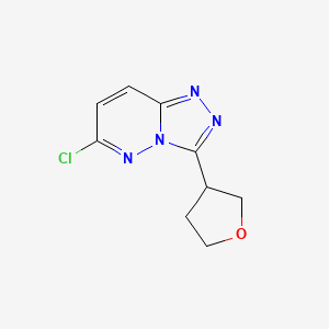 6-Chloro-3-(tetrahydrofuran-3-yl)-[1,2,4]triazolo[4,3-b]pyridazine plays a significant role in biochemical reactions due to its ability to interact with various enzymes and proteins. It has been observed to inhibit enzymes such as carbonic anhydrase and cholinesterase, which are crucial in physiological processes. The compound’s interaction with these enzymes involves binding to the active site, thereby inhibiting their activity and affecting metabolic pathways.