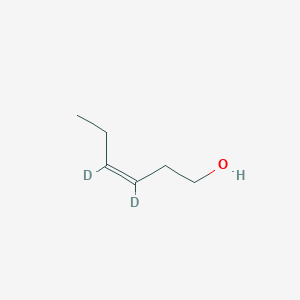 The synthesis of site-specific or uniformly deuterated GLVs, including cis-3-Hexen-1-ol-D2, is crucial for their application as precise internal standards and metabolic tracers. While some deuteration methods exist, the development of novel, efficient, and cost-effective strategies for complex GLVs remains an active area of research. Current approaches may involve heterogeneous catalysts for deuterium (B1214612) labeling or synthesis from deuterated precursors. epj-conferences.org