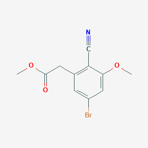 Methyl 5-bromo-2-cyano-3-methoxyphenylacetate is a chemical compound characterized by its bromine, cyano, and methoxy functional groups attached to a phenylacetate backbone. This compound is primarily used in scientific research and synthetic intermediates.