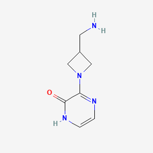 The mechanism of action of 3-(3-(aminomethyl)azetidin-1-yl)pyrazin-2(1H)-one involves its interaction with specific molecular targets. The compound may bind to enzymes or receptors, modulating their activity and leading to various biological effects. The exact pathways and targets can vary depending on the specific application and context of use .