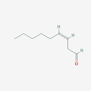 The mechanism by which (Z)-non-3-enal exerts its effects involves its reactivity as an aldehyde. It can form Schiff bases with primary amines, leading to the formation of imines. This reactivity is crucial in biological systems, where (Z)-non-3-enal can modify proteins and other biomolecules, potentially leading to changes in their function and structure. The molecular targets include amino groups in proteins and nucleic acids, and the pathways involved often relate to oxidative stress and cellular aging.