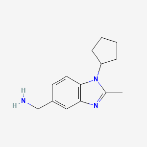 The mechanism of action of (1-cyclopentyl-2-methyl-1H-benzo[d]imidazol-5-yl)methanamine is likely related to its interaction with specific molecular targets. Benzimidazole derivatives are known to interact with enzymes, receptors, and nucleic acids, leading to various biological effects. The compound may inhibit enzyme activity, modulate receptor function, or interfere with DNA and RNA processes, depending on its specific structure and functional groups.