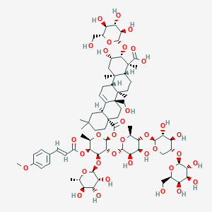 The IUPAC name for this compound is (2S,3R,4S,4aR,6aR,6bR,8aS,12aS,14aR,14bR)-8a-[(2S,3R,4S,5S,6R)-3-[(2S,3R,4S,5R,6S)-5-[(2S,3R,4R,5R)-3,4-dihydroxy-5-[(2S,3R,4S,5R,6R)-3,4,5-trihydroxy-6-(hydroxymethyl)oxan-2-yl]oxyoxan-2-yl]oxy-3,4-dihydroxy-6-methyloxan-2-yl]oxy-5-[(E)-3-(4-methoxyphenyl)prop-2-enoyl]oxy-6-methyl-4-[(2S,3R,4R,5R,6S)-3,4,5-trihydroxy-6-methyloxan-2-yl]oxyoxan-2-yl]oxycarbonyl-2-hydroxy-6b-(hydroxymethyl)-4,6a,11,11,14b-pentamethyl-3-[(2R,3R,4S,5S,6R)-3,4,5-trihydroxy-6-(hydroxymethyl)oxan-2-yl]oxy-1,2,3,4a,5,6,7,8,9,10,12,12a,14,14a-tetrade