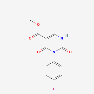 The mechanism by which 3-(4-Fluorophenyl)-2,4-dioxo-1,2,3,4-tetrahydropyrimidine-5-carboxylic acid ethyl ester exerts its effects involves interactions with specific molecular targets and pathways. The fluorophenyl group enhances the compound's binding affinity to certain receptors, leading to its biological activity.