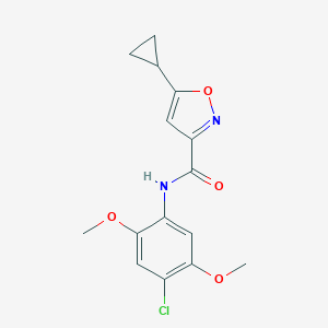 COC1=CC(=C(C=C1NC(=O)C2=NOC(=C2)C3CC3)OC)Cl | |