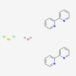 The mechanism by which cis-Bis(2,2’-bipyridine)dichlororuthenium(II) hydrate exerts its effects involves the absorption of light, leading to an excited state that can participate in various photochemical reactions. The excited state can transfer energy to molecular oxygen, generating reactive oxygen species that can damage cellular components. This property is particularly useful in photodynamic therapy for cancer treatment .