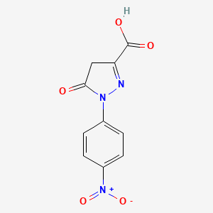 The mechanism of action of 4,5-Dihydro-1-(4-nitrophenyl)-5-oxo-1H-pyrazole-3-carboxylic acid depends on its specific application. In medicinal chemistry, the compound may interact with biological targets such as enzymes or receptors, leading to inhibition or activation of specific pathways. The nitrophenyl group can participate in electron transfer reactions, while the carboxylic acid group can form hydrogen bonds with target molecules, enhancing binding affinity .