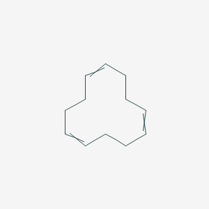 The mechanism of action of cyclododeca-1,5,9-triene involves its reactivity with various chemical reagents and catalysts. The compound’s double bonds make it highly reactive, allowing it to undergo a range of chemical transformations. For example, in oxidation reactions, the double bonds are targeted by oxidizing agents, leading to the formation of epoxides or other oxidized products . The molecular targets and pathways involved in these reactions depend on the specific reagents and conditions used.