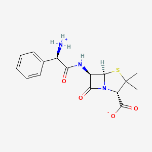 This compound is a semi-synthetic, broad-spectrum β-lactam antibiotic belonging to the aminopenicillin family.[1] Its core structure is derived from the penicillin nucleus, 6-aminopenicillanic acid, acylated with a D-(-)-α-phenylglycine side chain.[2] This side chain, specifically the amino group, is crucial for its enhanced activity against Gram-negative bacteria compared to penicillin G.[1]