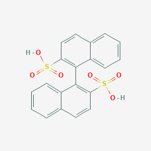 The mechanism of action of (R)-[1,1'-Binaphthalene]-2,2'-disulfonic acid involves its interaction with various molecular targets. The sulfonic acid groups allow the compound to form strong interactions with proteins and enzymes, affecting their activity. The compound can also participate in redox reactions, influencing cellular processes and signaling pathways.