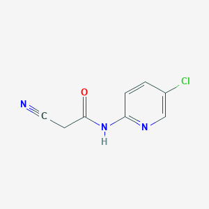 The synthesis of N-aryl and N-heteroaryl cyanoacetamides is a well-established field in organic synthesis. researchgate.nettubitak.gov.tr Historically, the preparation of these compounds, including this compound, has relied on the direct condensation of an amine with a cyanoacetic acid derivative. researchgate.net The foundational routes involve the reaction of 2-amino-5-chloropyridine (B124133) with reagents like ethyl cyanoacetate (B8463686) or cyanoacetic acid itself, often requiring thermal conditions or the use of basic catalysts to facilitate the reaction. tubitak.gov.tr