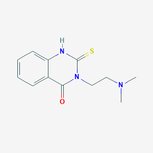 The mechanism of action of 3-[2-(dimethylamino)ethyl]-2-thioxo-2,3-dihydroquinazolin-4(1H)-one involves its interaction with specific molecular targets, such as enzymes or receptors. The compound can bind to the active site of an enzyme, inhibiting its activity, or interact with a receptor, modulating its signaling pathways. The exact mechanism depends on the specific biological system and the nature of the target molecule.