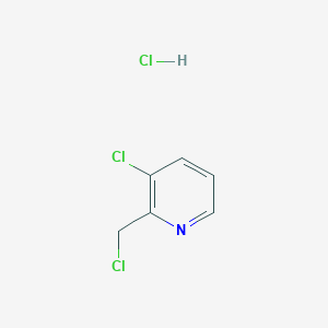 This compound is a disubstituted pyridine derivative. The pyridine ring, a core scaffold in numerous pharmaceuticals, is functionalized with a chlorine atom at the 3-position and a chloromethyl group at the 2-position. The molecule is supplied as a hydrochloride salt, which enhances its stability and solubility in polar solvents. The presence of two reactive chloro-moieties makes it a versatile intermediate for further chemical elaboration.