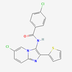 4-chloro-N-[6-chloro-2-(thiophen-2-yl)imidazo[1,2-a]pyridin-3-yl]benzamide