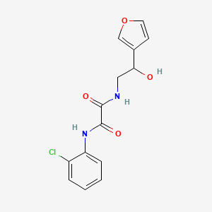 N1-(2-Chlorophenyl)-N2-(2-(furan-3-yl)-2-hydroxyethyl)oxalamide is an oxalamide derivative characterized by a 2-chlorophenyl group at the N1 position and a 2-(furan-3-yl)-2-hydroxyethyl substituent at the N2 position. While direct data on this compound are absent in the provided evidence, its structural analogs and related oxalamide derivatives have been extensively studied for diverse applications, including antiviral agents, flavor compounds, and antimicrobial agents . The oxalamide scaffold is versatile, allowing modifications that influence solubility, bioavailability, and target specificity.