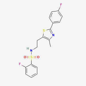 InChI=1S/C18H16F2N2O2S2/c1-12-16(25-18(22-12)13-6-8-14(19)9-7-13)10-11-21-26(23,24)17-5-3-2-4-15(17)20/h2-9,21H,10-11H2,1H3 | |