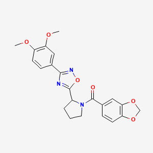 InChI=1S/C22H21N3O6/c1-27-16-7-5-13(10-18(16)28-2)20-23-21(31-24-20)15-4-3-9-25(15)22(26)14-6-8-17-19(11-14)30-12-29-17/h5-8,10-11,15H,3-4,9,12H2,1-2H3 | |
