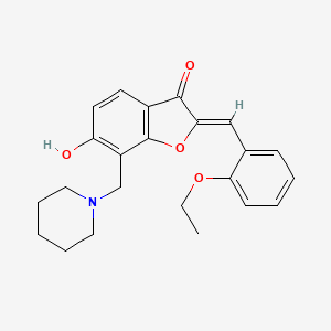 The compound 2-[(2-Ethoxyphenyl)methylene]-6-hydroxy-7-(piperidylmethyl)benzo[b]furan-3-one is a synthetic derivative that has garnered attention for its potential biological activities. This article reviews its pharmacological properties, mechanisms of action, and relevant case studies to provide a comprehensive understanding of its biological significance.