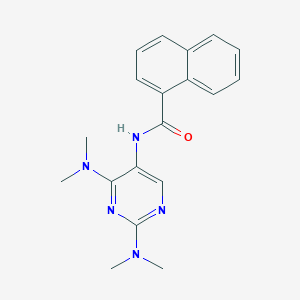 N-[2,4-BIS(DIMETHYLAMINO)PYRIMIDIN-5-YL]NAPHTHALENE-1-CARBOXAMIDE is unique due to its specific combination of pyrimidine and naphthamide moieties, which confer distinct chemical and biological properties. This uniqueness makes it a valuable compound for research and development in various scientific fields.