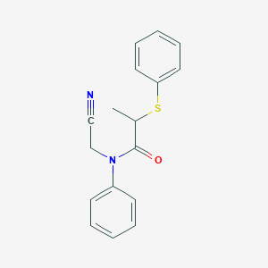 N-(cyanomethyl)-N-phenyl-2-(phenylsulfanyl)propanamide is an organic compound with the molecular formula C17H16N2OS This compound is characterized by the presence of a cyanomethyl group, a phenyl group, and a phenylsulfanyl group attached to a propanamide backbone