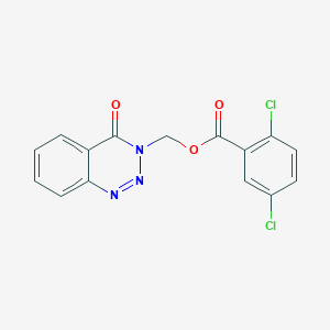 The mechanism of action of (4-Oxo-1,2,3-benzotriazin-3-yl)methyl 2,5-dichlorobenzoate involves its interaction with specific molecular targets and pathways. The compound can bind to enzymes or receptors, modulating their activity and leading to various biological effects. For example, it may inhibit specific enzymes involved in disease pathways, thereby exerting its therapeutic effects . The exact molecular targets and pathways involved depend on the specific application and context of use .
