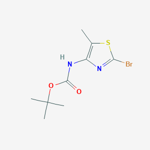 The mechanism of action of tert-Butyl (2-bromo-5-methylthiazol-4-yl)carbamate involves its interaction with specific molecular targets, such as enzymes or receptors. The bromine atom in the thiazole ring can form covalent bonds with nucleophilic residues in the active site of enzymes, leading to inhibition of enzyme activity . Additionally, the carbamate group can interact with amino acid residues through hydrogen bonding and hydrophobic interactions, further stabilizing the compound-enzyme complex .
