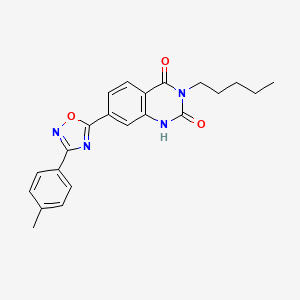 - IUPAC Name: 7-[3-(4-methylphenyl)-1,2,4-oxadiazol-5-yl]-3-pentyl-1H-quinazoline-2,4-dione