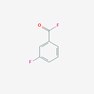 3-Fluorobenzoyl fluoride (C₇H₄F₂O) is a fluorinated aromatic acyl fluoride characterized by a benzoyl group substituted with a fluorine atom at the meta position. This compound is a reactive intermediate in organic synthesis, particularly in the preparation of pharmaceuticals, agrochemicals, and functionalized materials. Its acyl fluoride group (-COF) confers high electrophilicity, enabling efficient nucleophilic substitutions or cross-coupling reactions. Applications include its use in functionalizing magnetic nanoparticles for analytical chemistry (e.g., Fe₃O₄@SiO₂@FBC MNPs for perfluorinated compound detection) and as a precursor in drug discovery, such as indole-based monoamine oxidase B inhibitors .