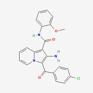 2-Amino-3-(4-chlorobenzoyl)-N-(2-methoxyphenyl)indolizine-1-carboxamide is a nitrogen-containing heterocyclic compound that belongs to the indolizine family. This compound has garnered interest in medicinal chemistry due to its diverse biological activities, including potential applications in pharmacology and therapeutic interventions.