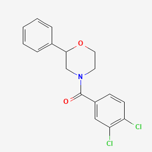 The synthesis of (3,4-Dichlorophenyl)(2-phenylmorpholino)methanone typically involves the reaction of 3,4-dichloroaniline with phosgene to form an isocyanate intermediate, which is then reacted with 2-phenylmorpholine . The reaction conditions often require anhydrous solvents and catalysts to ensure high yields and purity of the final product.
