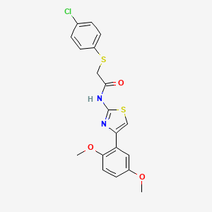 2-((4-chlorophenyl)thio)-N-(4-(2,5-dimethoxyphenyl)thiazol-2-yl)acetamide is a synthetic compound that has garnered interest in medicinal chemistry due to its potential biological activities. This compound features a thiazole ring, which is known for its diverse pharmacological properties, including antimicrobial, antitumor, and anticonvulsant activities.