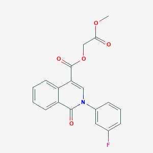 This compound is a substituted isoquinoline derivative featuring a 3-fluorophenyl group at the 2-position and a 2-methoxy-2-oxoethyl ester at the 4-carboxylate position. Its molecular formula is C₁₉H₁₅FNO₅, with a molecular weight of 367.33 g/mol. The fluorine atom at the 3-position of the phenyl ring and the methoxy-oxoethyl ester group are critical to its electronic, steric, and pharmacokinetic properties.