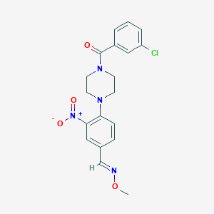 4-[4-(3-chlorobenzoyl)piperazino]-3-nitrobenzenecarbaldehyde O-methyloxime (CAS No. 383147-23-7) is a complex organic compound classified as a piperazine derivative. Its structure includes a piperazine ring, a chlorobenzoyl group, and a nitrobenzenecarbaldehyde moiety, which contribute to its potential biological activities and applications in medicinal chemistry and industrial processes .