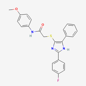 2-{[2-(4-fluorophenyl)-5-phenyl-1H-imidazol-4-yl]sulfanyl}-N-(4-methoxyphenyl)acetamide is a synthetic organic compound that features a complex structure with multiple functional groups